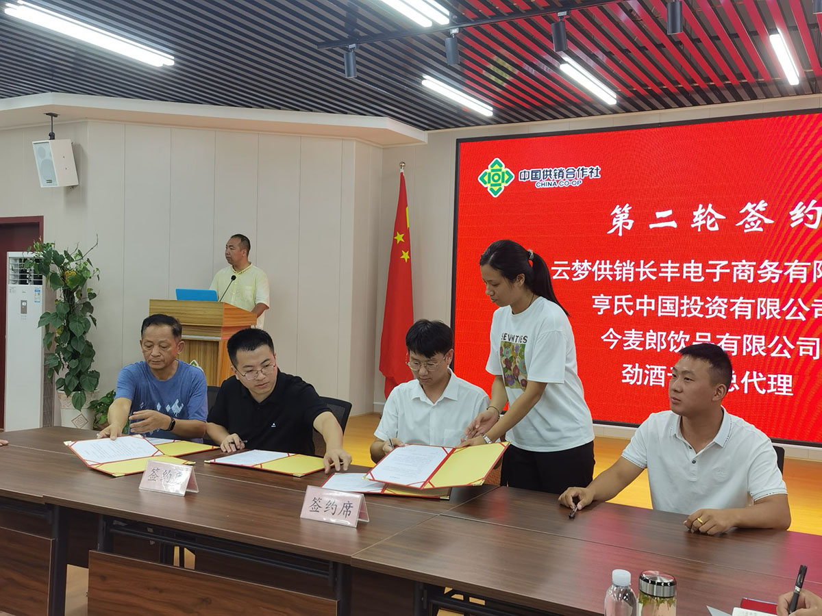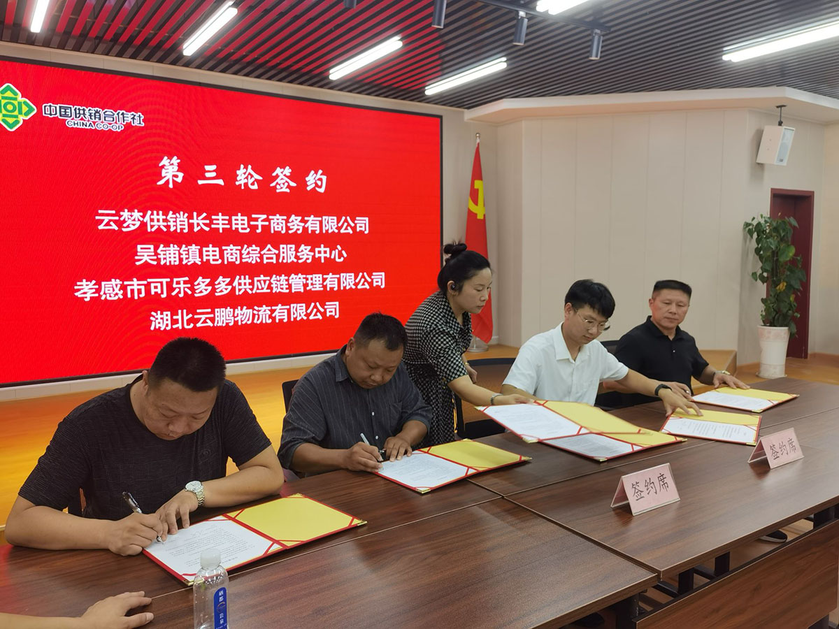 云梦供销长丰电商公司与省农资集团、云飞扬、厂商、本地经销商代表、本地基层网点、社区团购、快递企业代表进行了签约。